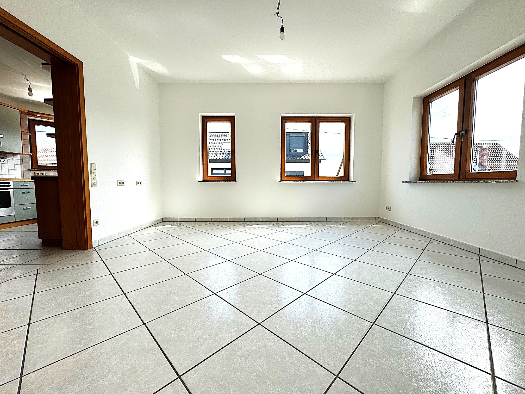 Die helle und geräumige 4-Zimmer-Wohnung im 1. Obergeschoss eines sehr gepflegten Mehrfamilienhauses besticht durch ihren besonderen Charme und ein angenehmes Wohnambiente. Sie verfügt über zwei Schlafzimmer, welche lichtdurchflutet sind und bieten ausreichend Platz für individuelle Gestaltungsmöglichkeiten bieten. Die Böden sind durchgehend gefliest und mit einer Fußbodenheizung ausgestattet. Das Tageslichtbad ist mit einer Dusche und einem WC ausgestattet. Zusätzlich steht ein separates Gäste-WC zur Verfügung – beide Räume sind ebenfalls gefliest. Ein besonderes Highlight ist der offen gestaltete Wohn-Essbereich, der durch seine Helligkeit und Großzügigkeit überzeugt. Er bietet eine helle und freundliche Atmosphäre. Hier gehen Wohnen, Essen und Kochen harmonisch ineinander über – perfekt für gemütliche Abende oder gesellige Runden mit Familie und Freunden. Abgerundet wird das attraktive Angebot durch den herrlich sonnigen Balkon, der zum Entspannen und Genießen im Freien einlädt. Die Wohnung wird renoviert übergeben und es steht eine Garage zur Verfügung.