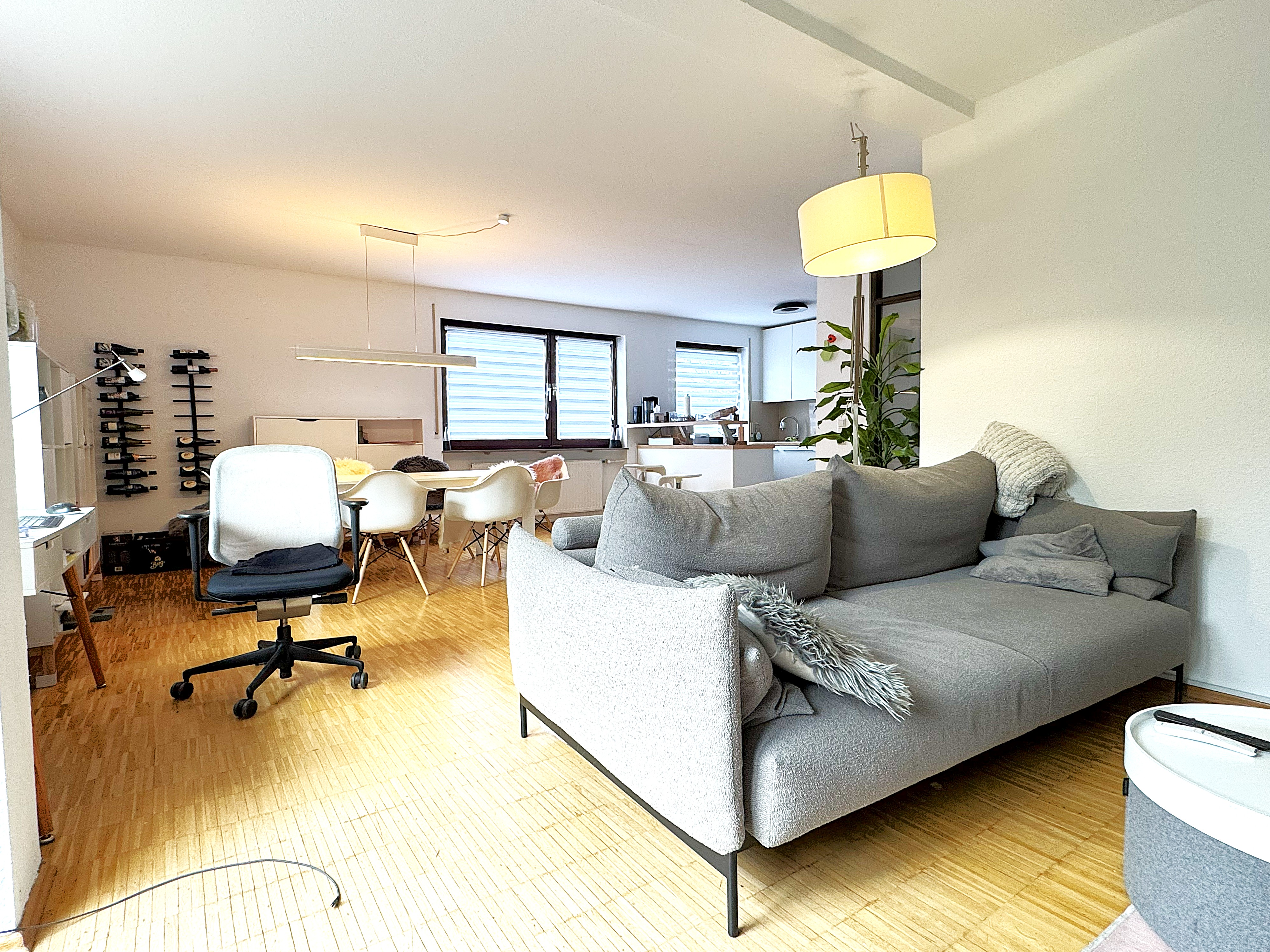 Die Wohnung befindet sich im Erdgeschoss des Hauses und hat eine wunderbare Terrasse auf der man herrlich entspannen kann. Sie wurde 2012 komplett saniert und mit einem hochwertigen Parkettboden ausgestattet. Das Tageslichtbad mit Badewanne und Dusche ist gefliest. Ein separates WC ist vorhanden. Der offene Wohn- Essbereich mit Einbauküche ist hell und gemütlich.