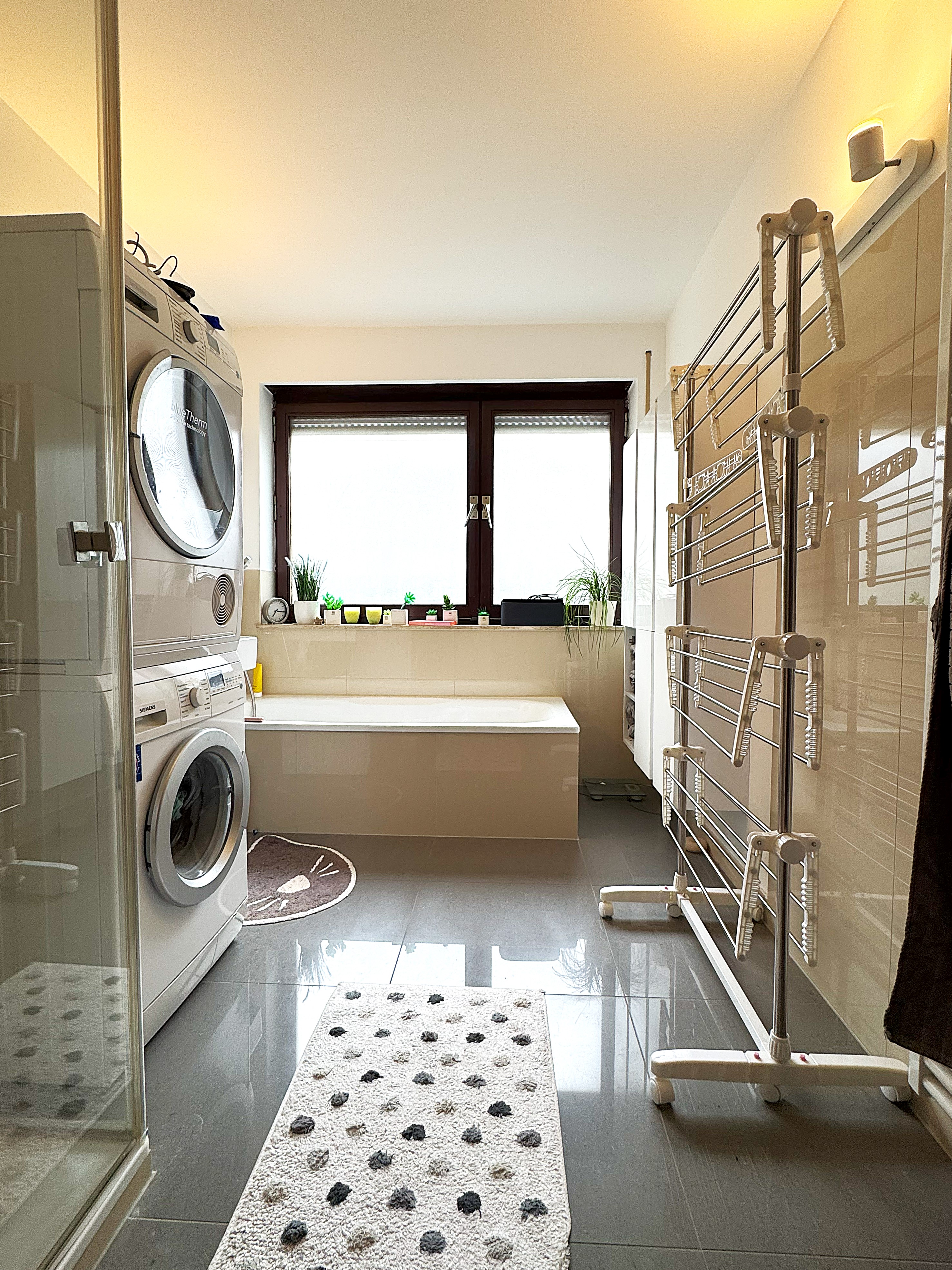 – das Bad und das separate WC ist weiß gefliest